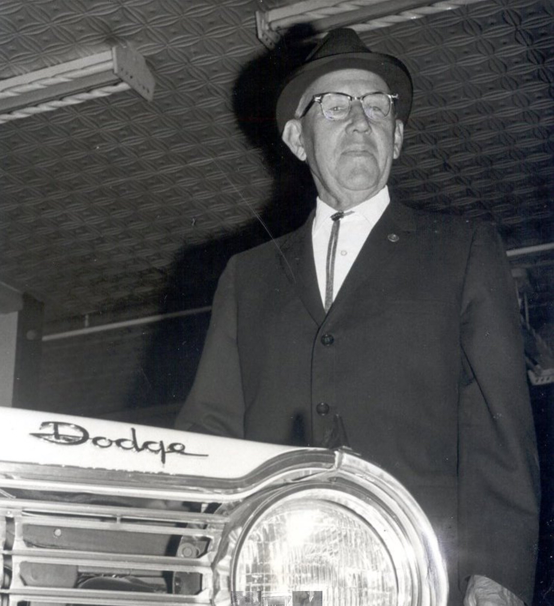 This previously unpublished photo of Lewis Reed was taken in the new car showroom at Reed Brothers Dodge original location at the triangle at Veirs Mill Road and Rockville Pike.