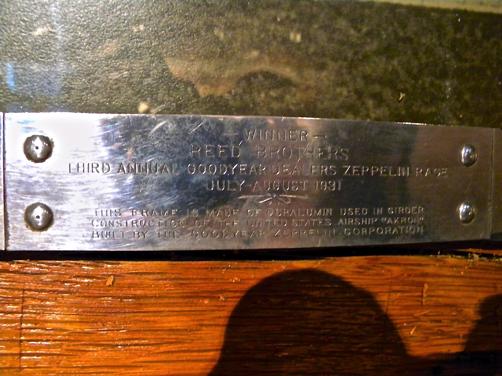 I found your blog when I was looking for information on the Goodyear 1931 Zeppelin races and the Akron picture in the Duralumin frame. My great uncle also had this item exactly as you show except with his name as the winner. I have the frame with customized engraving but the Akron print was damaged beyond salvage some years ago. I am trying to find a way I might get a replacement Akron print for the frame but so far no luck. Do you have any suggestions??