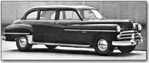 1950 DODGE CORONET, D-34: Popularity of the four-door sedan never seemed greater than in 1950. Dodge, for example shipped out 221,791 such body styles for the 1950 model year, or over 60% of total Dodge sales. Dodge station wagons joined those of other Chrysler Corporation cars in offering the first roll down tail gate window.