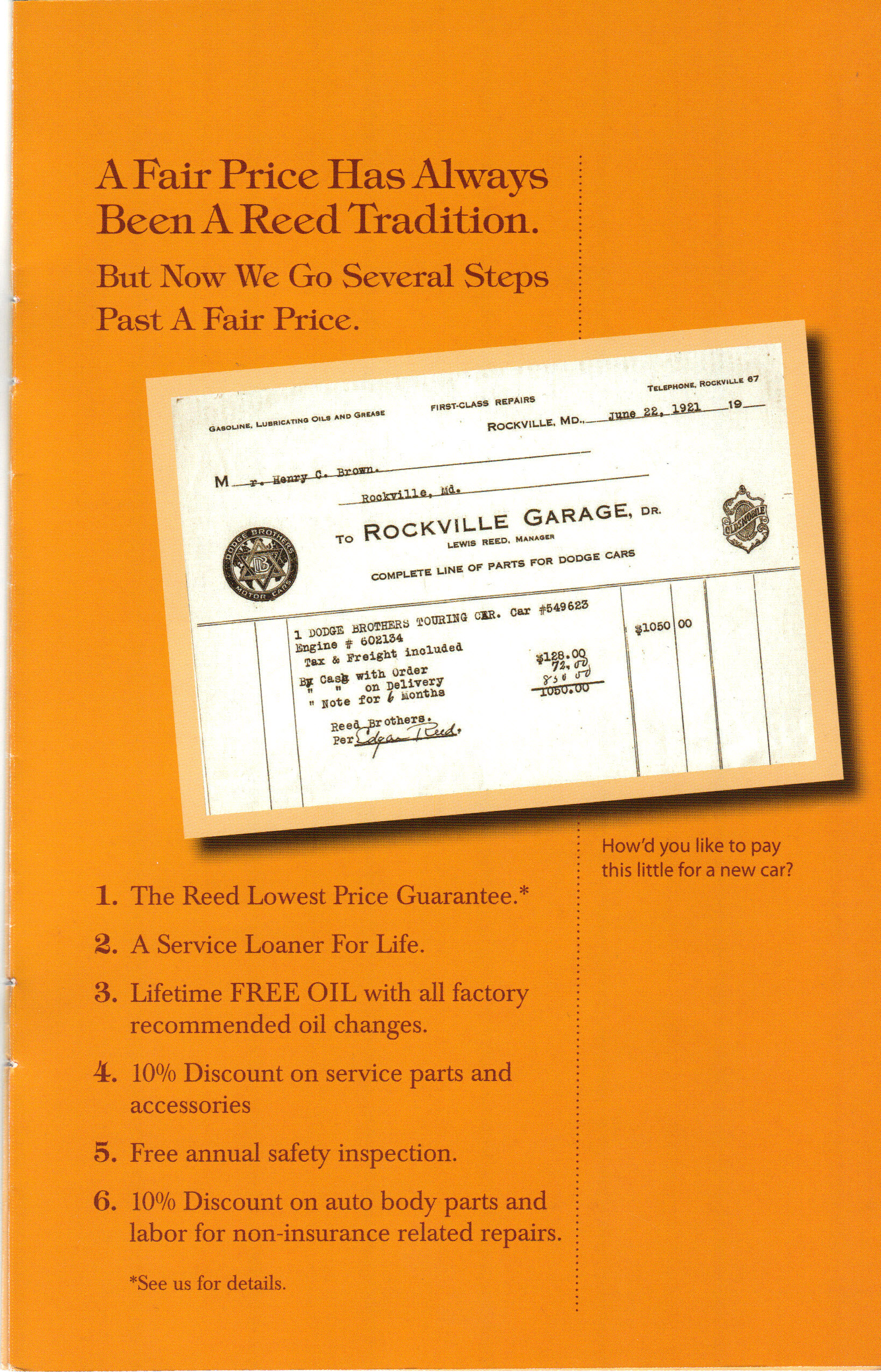 Reed Brothers Dodge History 1915 – 2012 Reed Brothers Dodge is a family business history that parallels the evolution of the American automobile industry – and to do justice to a legacy that spans almost a century – we proudly present our 97-Year history.
