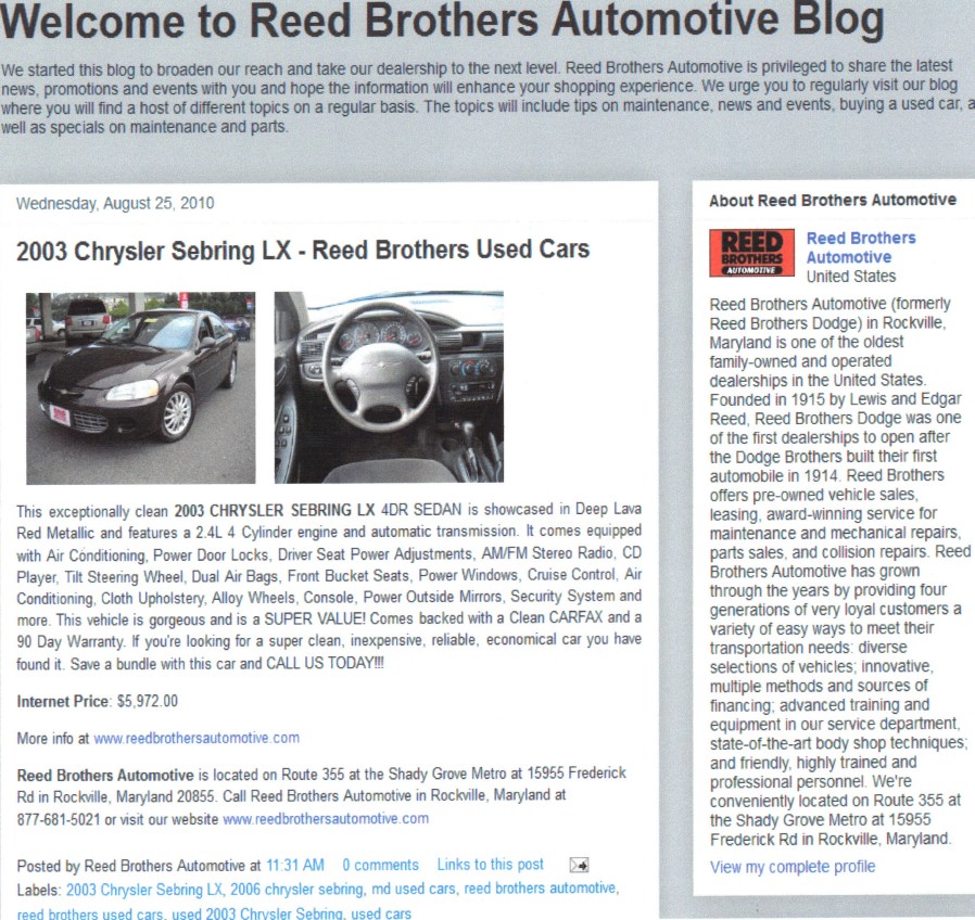 Reed Brothers Dodge History 1915 – 2012 Reed Brothers Dodge is a family business history that parallels the evolution of the American automobile industry – and to do justice to a legacy that spans almost a century – we proudly present our 97-Year history.