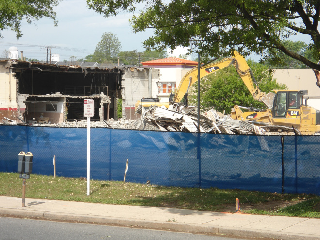 View from CARMAX lot of the Service Department being demolished