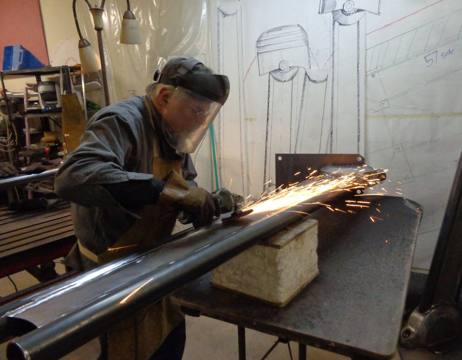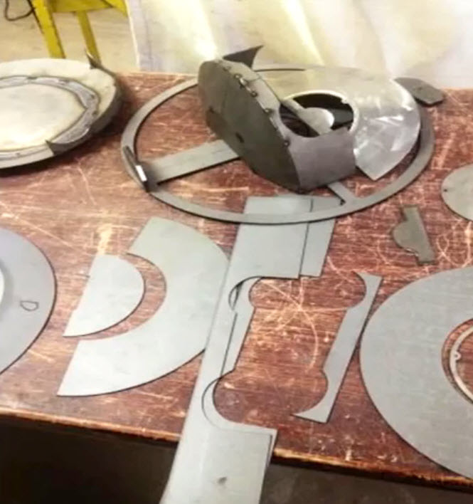 Steel and aluminum fabrication on the Hemi Lamps. Patterns were built and all of the pieces were cut and assembled.