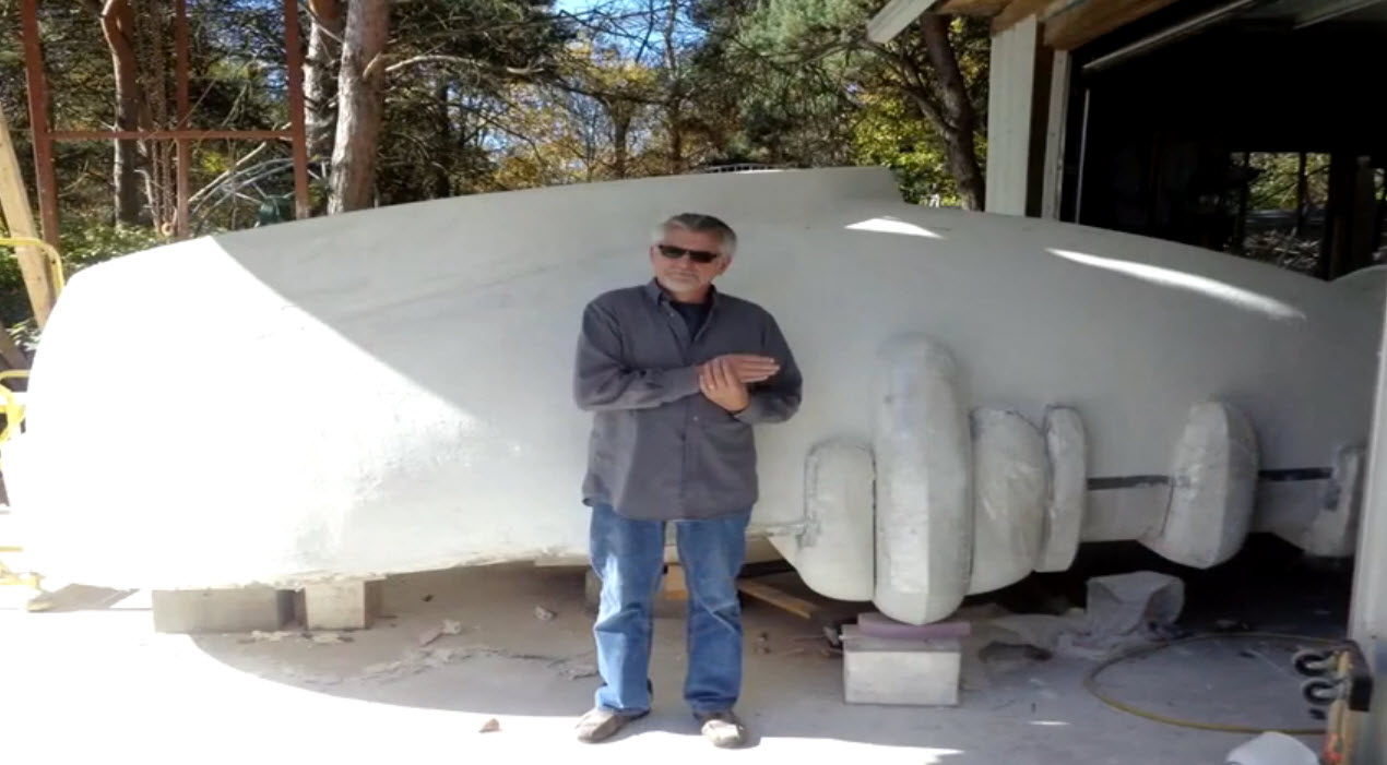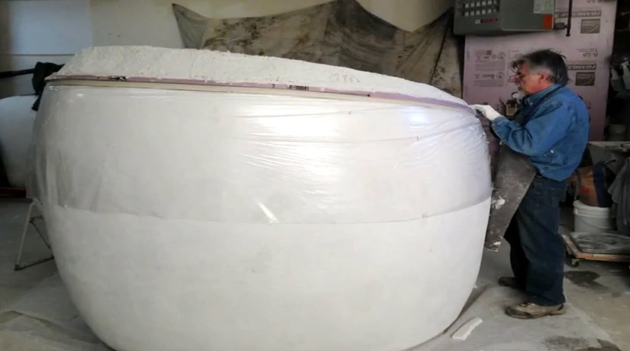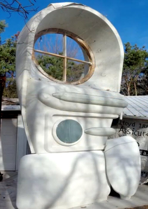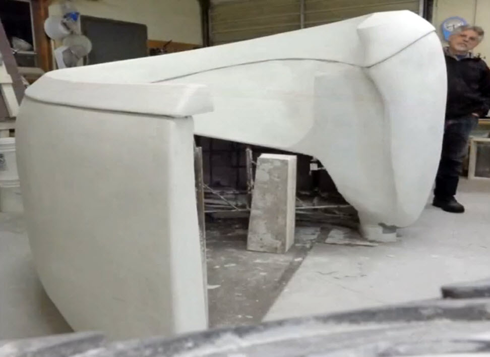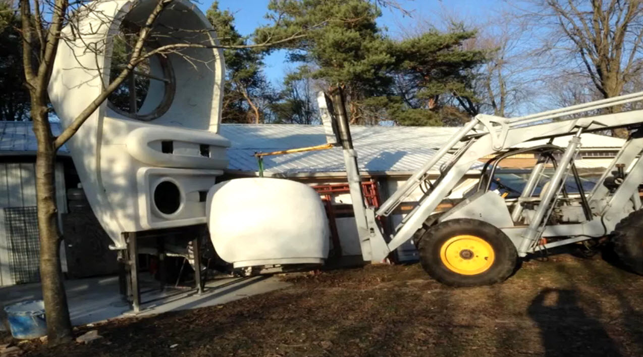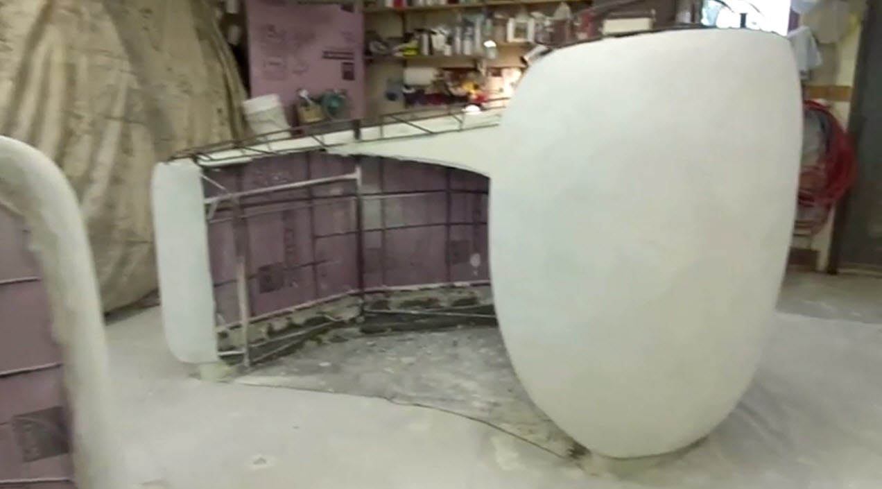 The Spiro Gira (big bumper pieces) took up the entire space in Tj’s studio. They were sprayed up in the studio and when the sun came out for about a week in November, he was able to move them outdoors and mate them up to the other big concrete piece.