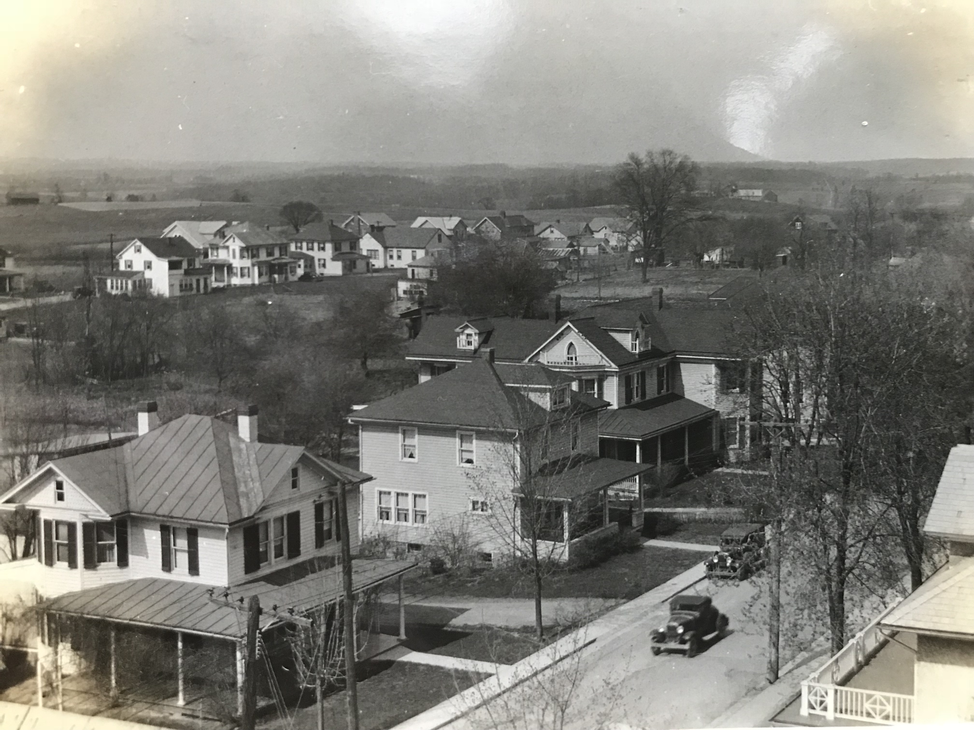 Walker Avenue In Gaithersburg taken from the steeple of Grace United Methodist Church late 1920s. Photo by Lewis Reed