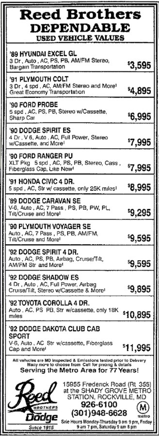 Reed Brothers Dependable Used Vehicles THE FREDERICK POST, FREDERICK, MD , FRIDAY, AUGUST 6, 1993