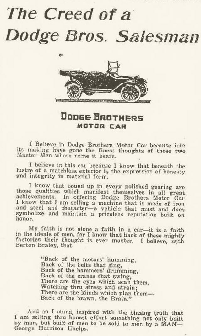 Creed of A Dodge Brothers Salesman