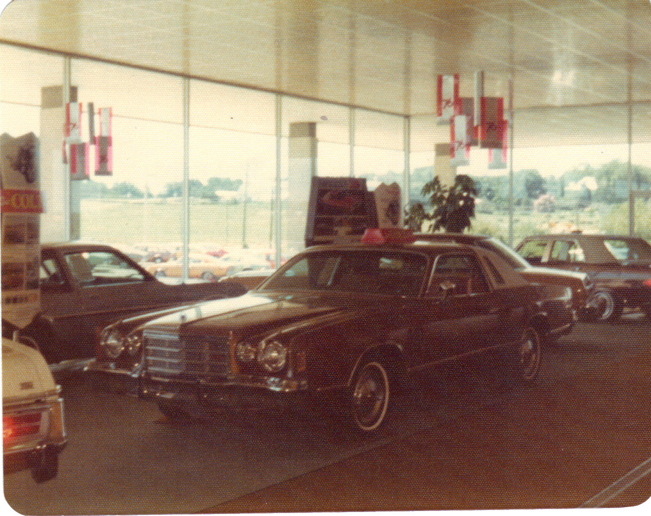 I found these two gems while looking through some of my old photo albums. The top photo shows what appears to be a 1976 Dodge Charger displayed on the showroom floor at Reed Brothers. Usually, the flashiest of the new models, spit-shined to perfection, would be displayed inside the showroom. Banners touting the new models were also strung up in the showroom.